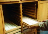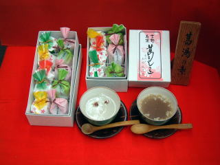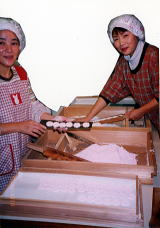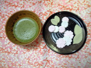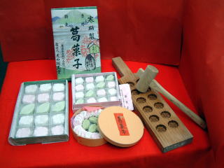 葛粉に砂糖を混ぜて練り、木型に入れて桜の花びらや、葉の形にし、障子のようなところに並べて、助炭(じょたん)の炭火でゆっくり乾燥させたお干菓子です。色とりどりで可愛いお菓子なので、お茶席で良く用いられます。