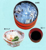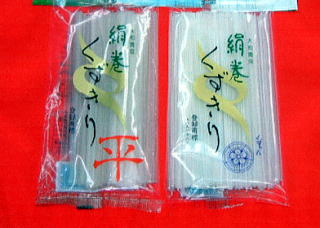 | 夏は冷たく冷やして黒蜜、きな粉などをかけてお召し上がり下さい。 | (平)太いので2〜3時間位水にひたし、熱湯で5〜6分煮て、火を止め、蓋をして20分蒸らして下さい。 | 冬は鍋物(水たき、寄せ鍋、すき焼き)などにいれます。透明でコシがあり煮くずれません。5分ほど熱湯で煮てからお使い下さい。 |