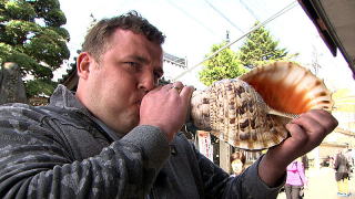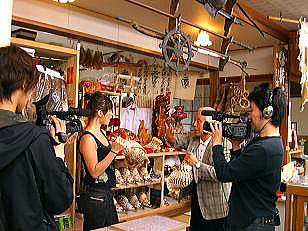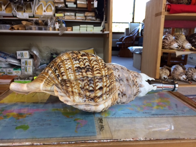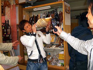 撮影は4月9日にTVの録画取りがありました。 ルーマニア人のガブリエラさんが、法螺貝の吹き方を教えて欲しいとお店に入ってこられました。 (前もってアポがありました。) |