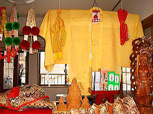 写真左の後ろに写っているものは鹿の皮で、大峰山へ修行のために