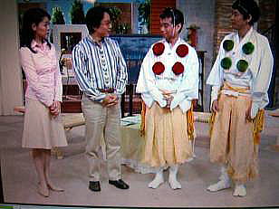 | 2007年5月9日 24:55〜毎日放送で放送されました。(10日 0:55 で真夜中です。) うまく「ブー」と鳴りました。 この番組は、わらしべ長者のように、自分の持っているものを、少し高い物に物々交換します。 ガブリエルさんが持っている交運のブレスレットを吉野雛と交換しました。 |