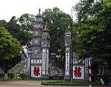 玉山祠(ぎょくさんじ)Den Ngoc Son ホアンキエム湖のゴックソン島にあります。入り口に儒学者のグエン・ヴァン・ズーによる幸福を意味する「福」と、豊かさを意味する「禄」が彫られています。 |