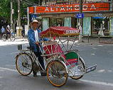 シクロ(Xich Lo)という人力三輪車です。左の写真は運転手が昼寝中です。のんびりしています。 町を歩くと、やたら乗るよう声をかけられます。 ボラレルので、要注意! |