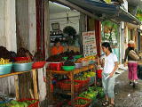 2005年7月21日(Thu) 果物屋さんです。 日本にない、ドラゴンフルーツや、ライチに似た味の、チョムチョム、ニャンや、スモモに似ているマンなども種類が豊富です。さすが南国。 |