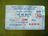 ハノイ市内の路線バスは、沢山走っています。鉄道が、発達していません。バスは、ハノイ市内どこまでも、3000ドン(25円)。ベトナム語しか通じませんので、バスの路線図を見て、行きたい場所を紙に書き、乗ったとき、車掌さんに見せておくと、降りる場所を合図してくれました。ちょっと冒険でした。バスには時刻表がなく、5分から15分待てば、バスが来ます。使用済みは、車掌さんが手でちぎります。 因みにメトロや、ノイバイ国際空港は少しハノイから出るためか5,000ドンです。本当にバスは安いです。 儒教の精神なのか、年寄りを大事にするお国柄で、主人が乗ると必ず若い方が席を譲ってくれます。 |