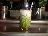 2005年8月13日(Sat) Kさんがテニスを始められるというので、ラケットとシューズを買うのに、Sさんがアテンドしてくださいました。 その後、余りに暑いので、「冷たいものが食べたいね」ということで・・・ 先日の洗礼を受けたので、すっかり胃腸もベトナムに対応できるようになったと確信し、ローカルでChe(チェー)というお菓子に挑戦しました。 寒天やタピオカやピーナッツが入っていて甘いおいしい冷たい食べ物です。フルーツの入っているものあるようです。さしずめアンミツに似ています。 路上の歩道が、オープンカフェとなり、お風呂のいすのような、プラスティックの椅子に座って、現地の人と一緒にたべました。 お腹の方は、大丈夫でした。 |