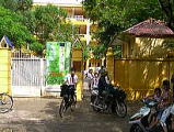 2005年8月12日(Fri) マンションの前が、オーストラリア大使館で、その横の大きな建物が、何なのか今日わかりました。中学校でした。登校日でしょうか。中から白のブラウスに赤いスカーフのタイを絞めた子供たちが出てきました。紺のズボンです。親がバイクで、迎えに来ている子供が、多いようでした。本当にバイクは、庶民の足です。 熱帯性気候のため、突然のスコールも多いのですが、ビニールガッパをさっとかぶり、皆、平気でバイクで走ります。 |