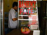 バインミーという、フランスパンの間に焼き豚や、野菜を挟んだ食べ物で、これが、けっこうおいしいものです。これを買っていってロンビエン橋の上で食べました。1つ6000VNDですから50円ぐらいです。 |