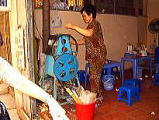2005年8月16日(Tue) Kさんと市内路線バスに乗り、ハノイ市内のお買い物を楽しみました。 ホータイの南のあたりで、観葉植物の朝市があると聞いて、そのあたりにいったのですが、なかなか見つけられず、そこらを、自転車のうしろに積んで観葉植物を売っているお兄さんから、花の付いていない、葉っぱだけの小さい胡蝶蘭を50,000VND(約450円)で買いました。言葉が通じないので、花の名前は間違っているかもしれません。 そして多分、日本には、植物検疫があるので、持っては帰れないないと思います。一つ観葉植物が、部屋の中にあると、生活が和むような気がして買ってしましました。 帰国するとき、どなたかに譲っていこうと思います。 (主人が私に一言・・「そんな心配しなくていいよ。」 その理由は、私の世話が悪くて、枯れてしまうから・・・。 実際、そうなってしました。 なぜ、主人にそんなことが分かったのでしょうl・・・) その後、通りがかりの竿おばさんに「ふかし芋」を買おうと私達が値段交渉をしていると、偶然通りがかったベトナム人のオッサンが、そのオバサンの見方になり、値段を吊り上げるのです。値段交渉が成立し「ふかし芋」を手に入れたのですが、きっとベトナム人の何倍もの値段で買ったのではないかと思います。(値段の相場がわからないので) それから、初めてベトナムコーヒー飲みました。 ドローッとした、非常に濃い独特のコーヒーです。練乳を一緒に入れるとおいしいそうです。私は、普通のブラックコーヒーのつもりで注文したので、練乳は入っておらず、ただ、ものすごく濃いベトナムコーヒーだけが運ばれてきました。とても飲みづらかったです。 いつか、このコーヒーが、おいしいと思いえるときが来るかもしれません。 休憩後、二人で旧市街へ行くバスに乗り、ハンガイ通りを散策。 刺繍のかわいい、ティッシュペーパー入れや、刺繍の施された旅行用の下着入れようの袋、クッションカバーなども、ゲットしました。 写真は、途中で見た路上の散髪屋さんです。木に鏡を吊り下げて店開きです。 |