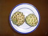 2005年8月22日(Mon) 朝市で「Ma」という果物を買いました。ホーチミンではマンカウと別の名前で呼ばれているそうです。では、日本名では、何と言うでしょうか。辞書によると「釈迦頭」と言うそうです。日本で見たこと無い。変な日本語と思っていたのです。実は、お釈迦さんの頭のようだということに気がつきました。本当に良く出来た日本名ですね。熟れると、皮が触っただけで剥けてきて、白い小さい房になり、甘くておいしい果物でした。 |