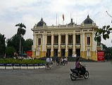2005年8月28日(Sun) 今日は疲れました。乗り物でトラブリました。 今までオペラハウスの前しか通ったことしかなく、今日、催しでバレーが(日本では考えられないぐらいの安さで)あるのを見つけ、あの素敵なオペラハウスに入れるとで、おしゃれをして、うきうき気分で出かけました。 ところが、行きはバス停でバスを待っているとき、セオムというバイクタクシーが近寄ってきて、断っているのに、ひつこく乗るように言います。ベトナム人は、移動によくバイクを利用します。) そこでバス待ちをしていたベトナム人の若い男性に、このバスは、「オペラハウスまで行くのか」とか聞いたりしていました。そうすると、そのバイクのおじさんが、その若い男性に「商売の邪魔をするな」とどなってきたのです。(言葉は分からないけれど、多分、そんな感じでした) その男性に悪くて、タクシーを拾うためにその場を離れました。するとそのバイクのおじさんも離れていったのです。 「回りの状況判断が出来ていない。」と主人にしかられました。 帰りは、もうバスがありませんので、オペラハウスの前からタクシーに乗りました。 ところが、タクシーのメーターが、どんどん上がって行くのです。料金は、行きの2倍になっていました。降りるとき、レセプションの人に間に入ってもらおうと、前までタクシーをつけるようにいうのですが、エンストの、ふりをして、レジデンス手前の道路でタクシーを止めてしまい、中に入ってくれません。 主人は日本語で、タクシーの運転手ベトナム語で、怒鳴りあいの様相になり、私は怖くて・・・・・オロオロ・・・・。 主人がタクシー会社やドライバーの名前など控えて、メーターに出ている金額を払い、タクシーから降りたのです。そしたら、そのタクシーは、エンジンをかけて走りさってしまったのです。エンストはお芝居でした。 もう、オペラハウスで何を見たのかも忘れました。 あとで思うと「乗った方が、アホでした。」タクシーを乗るときは、タクシー会社を確かめなくてはいけないそうです。 こちらでは、日本とは違うことを、いつも意識しながら、行動しないといけないと改めて思いました。 オペラハウスで見たバレーの方ですが、プログラムを見て思い出すと、創作のダンスや、創作の物語で、変わっていたように思います。 と言っても、今まで日本でバレーは、2回(コッペリアと、スワンレイクなどの有名な部分のダイジェスト) しか見たことがないので、よく分からないのですが・・・。 バレーなので言葉がありません。見て分かるかどうかは、感性の問題ですよね。タイトルは、「Truong Chi」で、アジア的でしたが、とにかく 独特の雰囲気気で変わっていました。 因みに、このオペラハウスは、フランスの統治時代の1911年に、パリのオペラ座を模して建てられた劇場です。見学だけの一般公開は、ありません。 |
