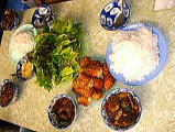 2005年8月6日(Sat) 週末のハイフォンへ旅行は、都合で取りやめとなりました。 ベトナム人が沢山くるベトナム料理屋さんのメニュー紹介します。 これは、お奨めの料理です。おいしいですよ。 ![]() ![]() ![]() Rau muong (くんしん菜) Nem Ran(上げ春巻き) Lau Hai San(シーフード鍋) |