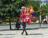 ![]() 一見、七夕飾りのようにみえますが、これは、ビニールのおもちゃで、キティーちゃんのにせものや、鹿、ウルトラマンに似た人形など、売っています。 |