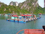 再び、乗船し、また、奇岩の中を一路カットバ島へ向かいます。ゆったりとした船旅です。 途中に、自宅兼養殖場のようないかだが、いくつかあり、そこで、魚を買う人もいました。 |