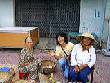 2005年9月12日(Tue) 会社のハノイ在住の婦人会がありました。 新しくこちらに来た 私を含めて6人のwelcome と 日本に帰られる3人の方の歓送迎会でした。2ヶ月に1回あるそうです。 不安一杯で始まったハノイ生活でしたが、一番最初に力になって下さったのが、この会の役員のIさんでした。「自分たちが、ハノイに来たときも、先輩が同じように親切にしてくれたので、」とおっしゃって、いろいろ教えてくださいました。 写真は、Banh という米粉を使った、中に美味しい「あんこ」の入ったカラフルなお菓子です。Oさんに頂きました。 |