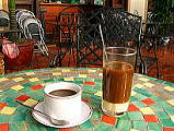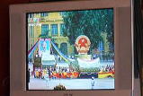 少し早い目に集合場所に着いたので、喫茶店でベトナムコーヒーを注文しました。練乳が、底のほうに入っていて、かき混ぜて飲みます。その間、既に60周年のいろいなイベントが始まっていて、テレビで放送されていました。いよいよ、ピックの車が来て、ハノイ郊外のバスターミナルへ向かい、そこでまた、行き先別に振り分けられ、人数調整をして、いよいよ出発まで1時間かかりました。 | ![]() |