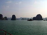 ハロン湾は、約1500km2 の海域に、約2000の奇岩がある世界遺産です。彫刻作品のように奇岩が立ち並んでいます。中国の桂林から広がる石灰岩台地が、最終氷河期に沈降し、長い歳月をかけて海水や風雨で浸食されて出来たものだそうです。「海の桂林」と言われています。 ハロンの由来は、中国の侵略に悩まされていたその昔、龍の親子が舞い降りて外敵を打ち破り、その際に吐き出した宝の玉が、無数の岩に変化したという伝説に基づいて、ハ=降りる、ロン=龍 となったそうです。 |