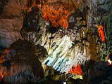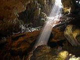 鍾乳洞見学 ティエンクン洞(Thien Cung=天宮)とダウゴー洞(Dau Go)に立ち寄りました。 オレンジ、ブルーやグリーンでライトアップされていて、よく言えば、幻想的と言えなくも無いが、はっきり言わせてもらえれば、センスがない。ちょっと言い過ぎ? 左の写真は、龍の頭に仏さんが乗っているように見えるそうですが、見る人により何とでも見えます。 右の写真は、鍾乳洞の天井に穴が空いていて、そこから、光が差し込み、いかにも天国に行くのように見えます。 |