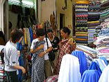 2005年9月5日(Mon) 旅行の疲れをものともせず、Sさんの紹介で、Kさんとチョホムマーケットで、服地を買い、その後ワンピースなどに仕立ててもらうというのを、体験しました。 私は、太いので普通のベトナムの婦人サイズでは入いりません。それに、とても安く服地も売っているし、仕立てもやすいのです。1000円ほどで素敵なワンピースを縫ってくれます。 |