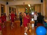 2005年9月19日(Mon) このアパートは、200所帯ぐらい住んでいます。韓国人が6割、日本人が3割、あとは、ベトナム人やロシア人です。 このアパート内にフィットネスセンターがあり、全て無料で使えます。初めて今日使いました。そのほか、太極拳、ヨガ、エアロビクスの教室も日替わりであり、無料で利用できます。今日は、太極拳の教室に参加しました。「mot hai ba bon nam sau bay tam・・・」べトナム語の「12345678」とカウントしながら練習します。 先生は、流石に滑らかできれいです。 |