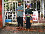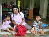 2005年9月21日(Wen) さくら Hoa anh dao 幼稚園です。インターナショナル幼稚園も2つ、ベトナム人の通う幼稚園、といろいろあります。どこに入れるかは親の判断です。 こちらは日本人の「さくら先生」が始められた幼稚園です。 現在、20名ぐらい日本人のお子さんが通っています。園服に、桜の花と「さくら Hoa anh dao」刺繍がしてあります。(ベトナムでは刺繍が盛んです。)それぞれ、お着替えを持って登園です。かわいいですね。登園に御一緒させていただきました。 |