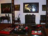 Doan Chi Trungs氏のベトナム漆絵のギャラリーに行きました。(日本人の方で、漆絵を習っていらっしゃる方からご案内を頂きました。) 以前、見たベトナム漆絵は、華やかな色使い(人工漆)でしたが、Doan Chi Trungs(ゾアン チー チュン)氏の漆絵は、天然漆だそうです。どれも、深い味わいのある色調でした。工房も、伝統的な木造家屋に囲まれた中庭は、吹き抜ける風が心地よく落ち着いた雰囲気でした。 べトナム語で漆芸のことを「Son Mai」といい 漆(Son)、砥ぐ(Mai)という意味があります。日本の漆とは違い、ラッコールの純度が違い、乾きが悪いのが、かえって、ベトナムの気候と会って作業がしやすいそうです。ベトナム天然漆は研きだしによって複雑な色合いと質感を表現しているようです。白い色のときは、卵殻を使うのも特徴の1つです。日本に帰国中でお会いできませんでしたが、安藤彩英子さんが、ベトナム漆に魅せられて、10年間勉強され、こちらで教えていらっしゃるそうです。 |