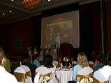 ![]() ホテルの室内でしたので、写真が暗いですが、舞台で知的障害者の子供達が先生の歌にあわせて踊ってくれているところです。 |