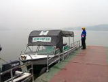 ![]() モーターボートに乗ってゴルフ場に入ります。 |