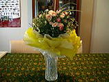 2006年3月10日(Fri) 会社のミセス会当日。私達5名がお当番でした。3月1日に載せましたお店が良心的で、会計もうまく行きホットしています。 Oさんが12-19市場で手配してくださったお花も、アレンジが綺麗で、しかも安かったんす。 ベトナムでは変なアレンジが多いのです。そして日本人だとベトナム人の3倍の値段を平気で取ります。日常で生活では、こんな些細なことがストレスになります。 |