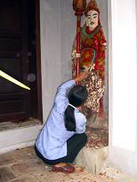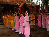 2006年3月13日(Mon) 住まい近くの ハノイ四鎮の西を鎮めるDen Voi Phuc デンヴォイフック 霊郎祠 でお祭りがありました。 報道関係者らしい取材の人が3人来ていましたが、その他は、祭りの関係者以外は、ベトナム人もいないし、まして、日本人は私一人で、「ここで見ていていいのかな」と思いながら、見せてもらいました。 |