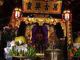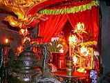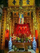 2006年3月23日(Thu) 歴史研究会の小グループで、Dinh Nam Dong 南同亭へ。 (亭:村の集会所。村の守護神が祀られている。) ハノイのドンダー区ナムドン通りにあり、李朝時代のリー・トゥオン・キケットを祀る。 ベトナム人にとっては宋の侵略を撃退した英雄です。旧暦6月2日は、命日でお祭りがあるそうです。 |