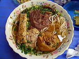 2006年3月11日(Sat) ローカルで食べたブンボーフエ。 ケースにあった豚足入りを指差し入れてもらいました。骨が大きかったけど周りのコリコリしたところが美味しい。初めて食べた豚足でした。 |