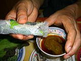 ![]() 左の写真の真ん中が、Hao song ハーオソン 生牡蠣。(生牡蠣も所変われば)ライスペーパーに包んで、香草やハーブなどをいれ、→ |