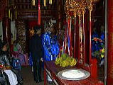 雄王の母・嫗姑が祀られているらしい。 拝んでいる人が古いベトナムコイン(真ん中に穴の開いたコイン)2枚をお皿の上に置き、占いをしていました。 |
