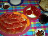 Wさんは、グルメです。ランチに行ったイタリア料理 IL GRILL。 右がBRUSCHETTA、ブルースケッタといって前菜で、バケット(パン)の上に湯剥きした角切りトマトがのっています。オリーブオイルとバジルが絶妙。 左がPROSCIUTTO CRUDO DIPARMA 生ハム。 あと、パスタとリゾット(ポルチィニ)とトスカーナワインでした。 |