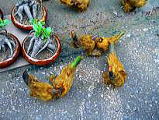 ![]() 右がOc huong nuong オックフオーン ヌオン 海タニシを焼いたもの 4つで90,000VND(650円)、サザエの苦味のないような味。 |