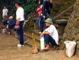 2006年3月19日(Sun) ハノイから北西に70Kmほど離れた PHU THO(フート省) Den Hung のHung King's Temple へ、NさんとNさんの運転手さんの案内で、朝6時30分に出発。 Den Hung のHung King's Temple は、ベトナム建国の神話があるところです。 水(男性の神)と山(女性の神)から、100人の男の子が生まれ(百越の祖先)、その後、50男は水界のダー河へ、50男は山界の傘円山(バービー山)へ行った。その山へ行ったうちの一番兄の雄王(フンヴォン)がベトナム建国の王として Den Haに祀られています。 ベトナムの史書「大越史略」に記述されているのは、雄王(フンヴォン)が、文郎(ヴァンラン)国を建国。ベトナム建国の王として信仰されていますが、史跡などが発見されていないので、青銅器文化を結びつけている人もいて、伝説の域をでていません。 最初、車を止めたところへ、10人ぐらいの物売りのベトナム人に取り囲まれてどうなることかと思いました。 |
