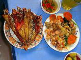 ![]() 金目鯛の揚げたもの。 エビの炒めたもの。 |