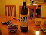 | M先生が、持って来られた、北海道の日本酒「男山 純米」 米と米こうじだけでつくられています。 イカナゴlの釘煮をアテにして、楽しい時間が過ぎていく。 |